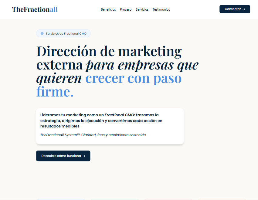 Visitors can quickly understand what The Fractionall offers, who it’s for, and how to take the next step. The experience feels structured without being rigid, and the content reads consistently across pages.